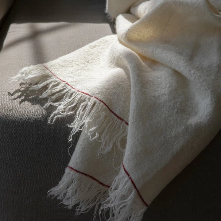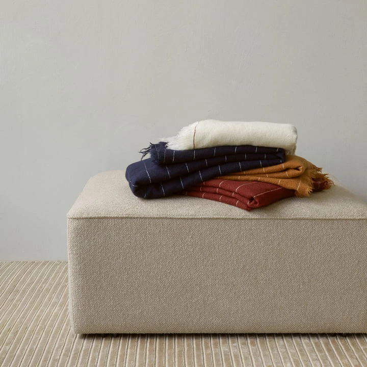 De Battus wollen deken van Audo is in Europa geweven van 99% Italiaanse wol en zijde en is verkrijgbaar in verschillende kleuren.