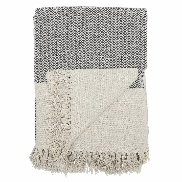 De deken met franjes van Bloomingville houdt het warm op koude dagen en is ook een mooie versiering op de bank of de fauteuil. Tweekleurig in lichte kleuren, het plafond ziet er fris en modern uit.