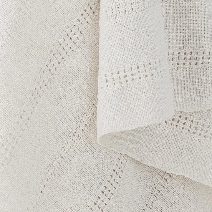 De Niccoline throw van Bloomingville is gemaakt van 100% katoen in witte tinten. De gooi heeft decoratieve franjes aan de uiteinden en een stijlvol ontwerp. Het past goed bij een Scandinavisch en minimalistisch interieur.