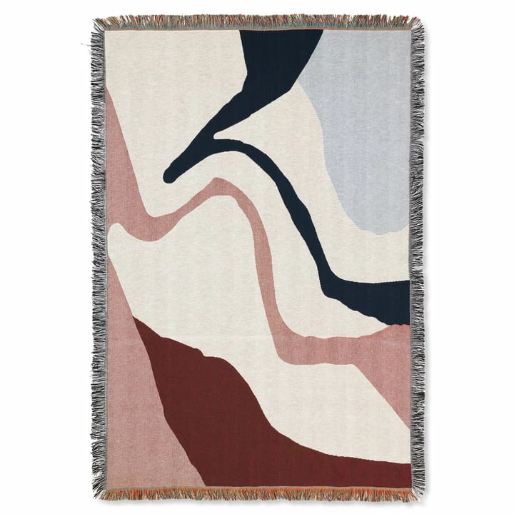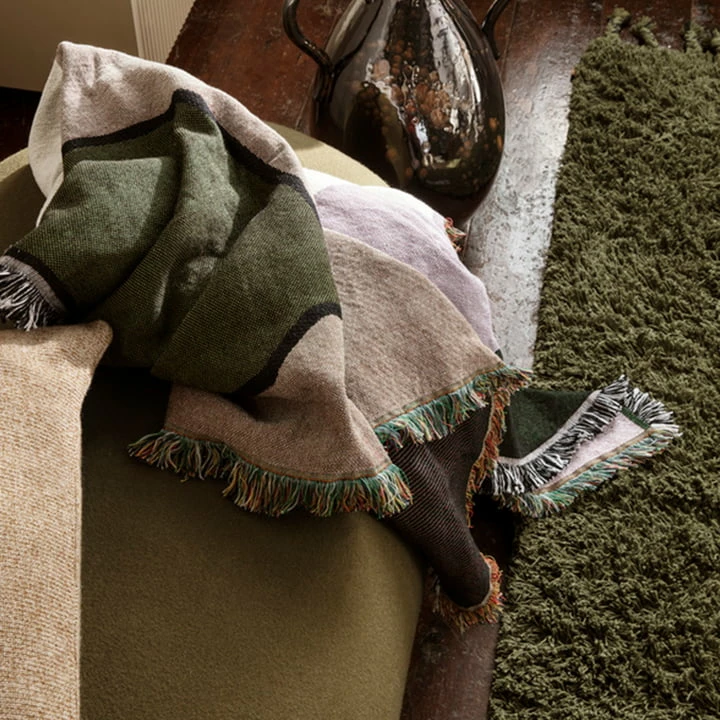 Losse franjes completeren het dessin aan alle vier de zijden, waardoor de deken een decoratief textiel wordt op de bank of fauteuil. Verkrijgbaar in verschillende kleuren, past de deken goed in verschillende sferen.