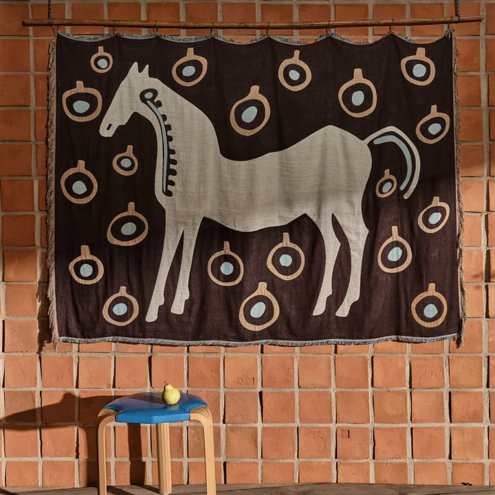 Het patroon Musta tamma, in het Fins “zwarte merrie”, weerspiegelt de herinneringen van kunstenares Maija Isolas aan haar kindertijd. In die tijd stelde zij zich vaak voor dat zij vrij door het bos galoppeerde met een grote kudde paarden. Tegenwoordig siert het patroon veel nieuwe producten van Marimekko, die allemaal in de Connox Shop te vinden zijn.